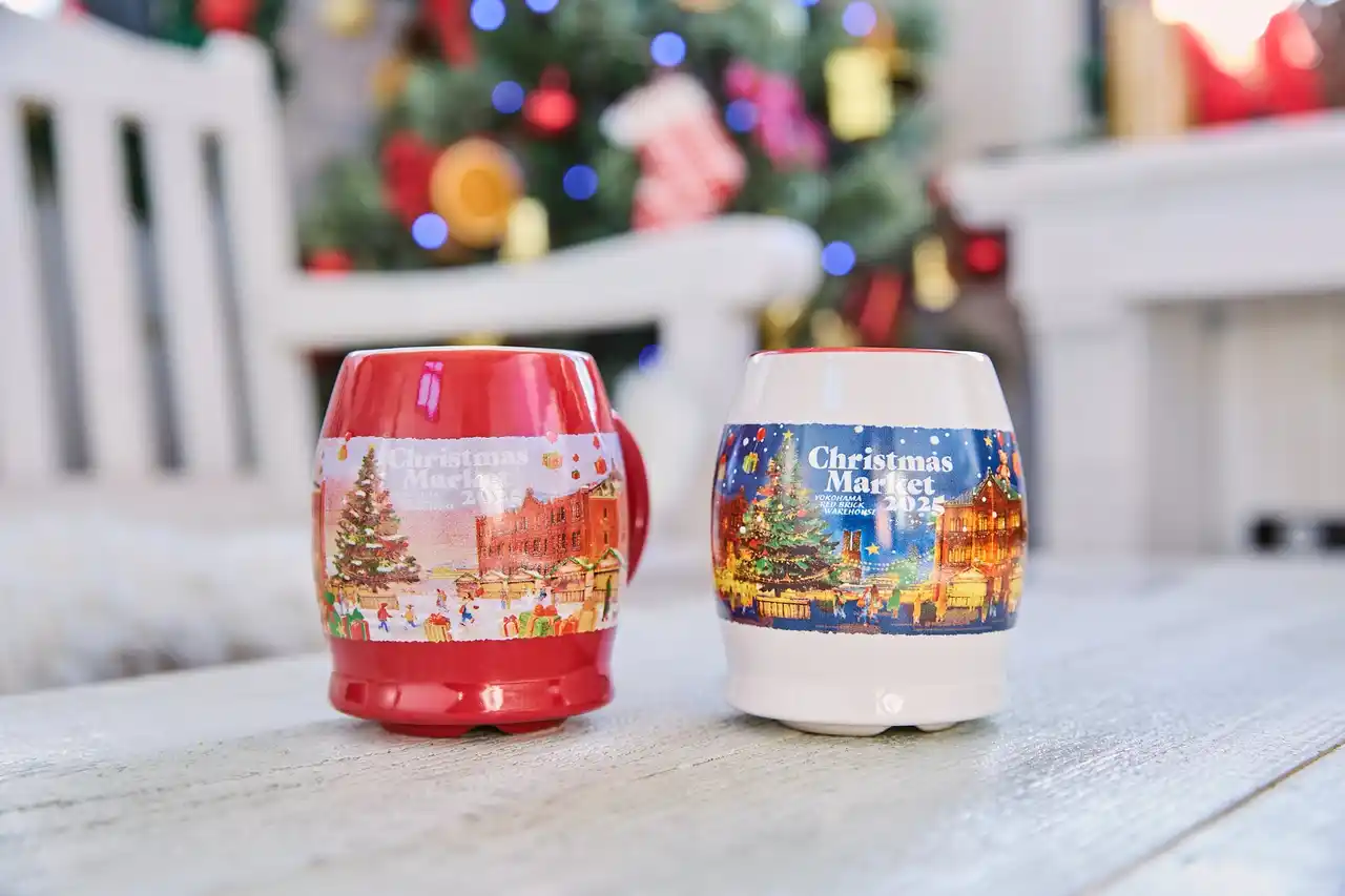 毎年デザインが変わる会場限定マグカップは多くの方にご好評いただき、発売を心待ちにされるクリスマスマーケットの人気アイテムです。定番の「オリジナルマグカップ」に加え、昨年初登場しご好評をいただいた「プレミアムマグカップ」が今年も登場します。 |