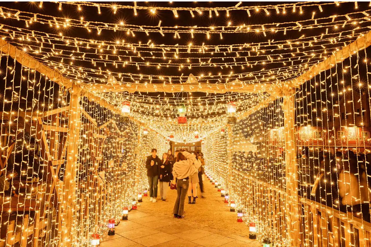 定番から新コンテンツまで、豊富なイルミネーションで夜のみなとみらいを照らします。特に横浜赤レンガ倉庫の広々とした敷地を活かした大規模イルミネーションは圧巻です。お客様からは「映画とのコラボなど、ストーリー性のあるイルミネーションで見ていて飽きない。15分おきに流れる特別イルミネーションも楽しみ」「入場してすぐの光のトンネルはクリスマスマーケットに来た実感ができ、とてもワクワクした。コールマンやYOKOHAMAのオブジェが海をバックにキラキラしていて、思わず写真を撮りたくなる」とご好評いただきました。 |
