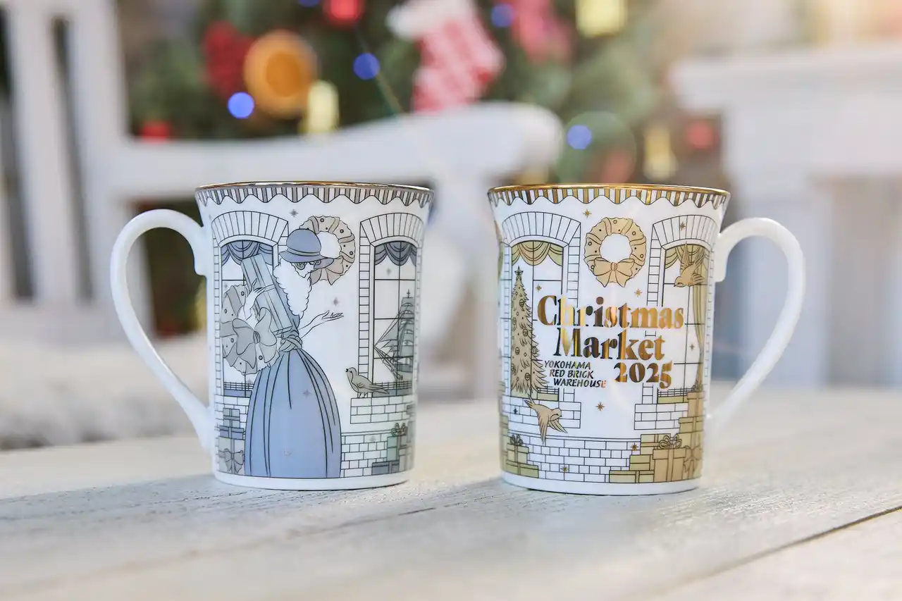 ファンも多いオリジナルマグカップ。今年のデザインは、“みなとみらいの夜景を背にした横浜赤レンガ倉庫に雪とプレゼントが降りしきる12月24日の夜”を描いた白、“みなとみらいの港を背にした朝焼けの横浜赤レンガ倉庫に雪とプレゼントが降り積もる12月25日の朝”を描いた赤、の2色展開です。 |
