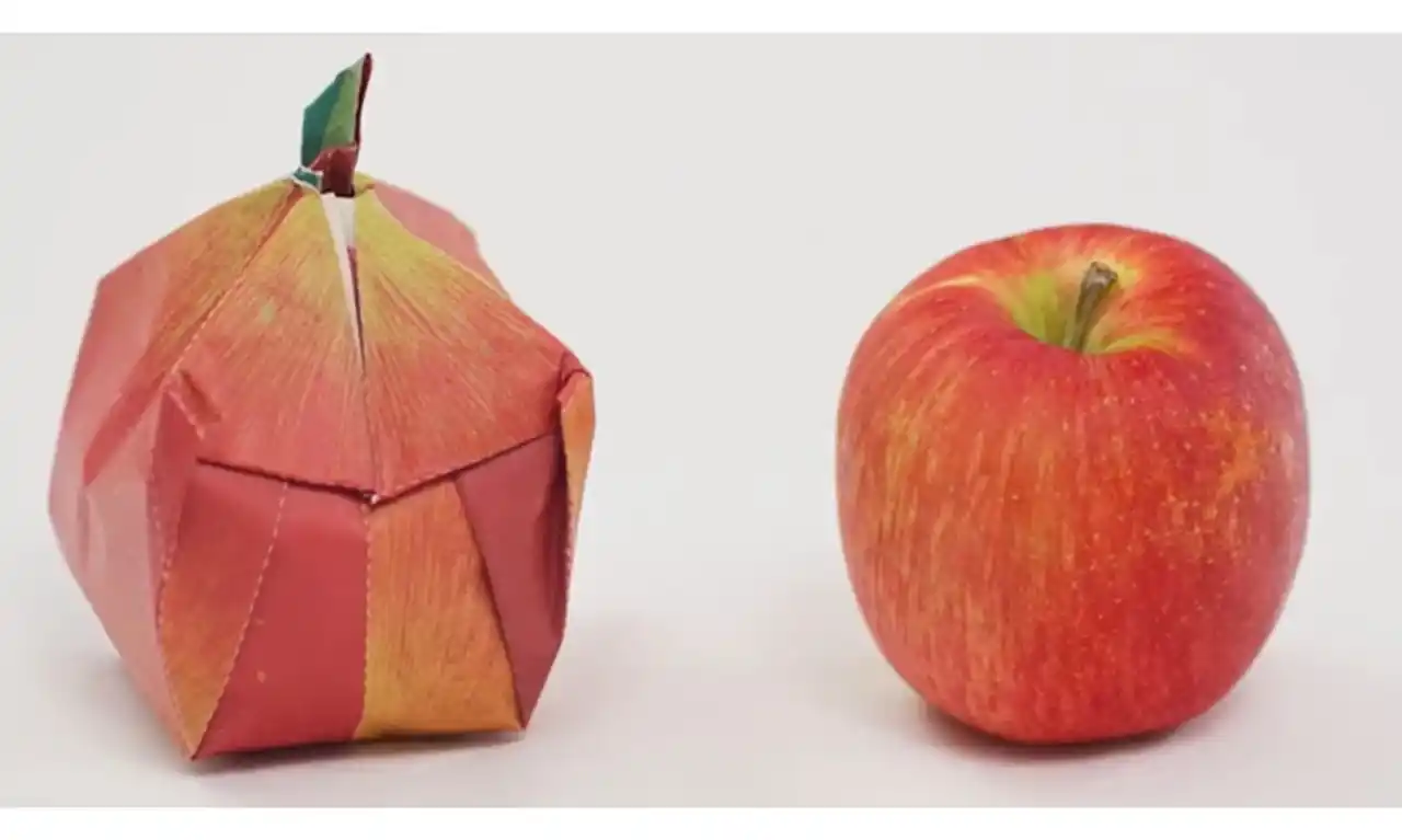 折り紙はあえて難易度を高め、りんご1個ができるまでの工程の多さや、農家さんがりんご栽培にかける手間・愛情を表現しています。 |
