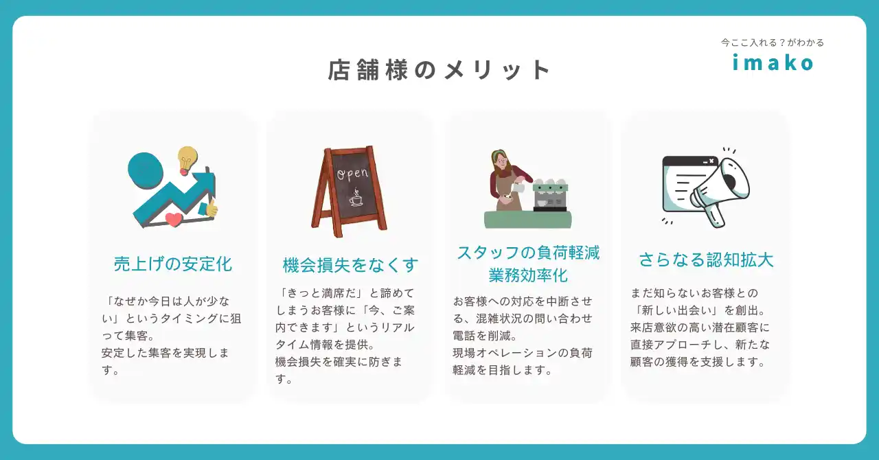 新規顧客との接点創出 imakoのユーザーベースを通じて、これまでリーチできなかった潜在顧客にアプローチできます。 |