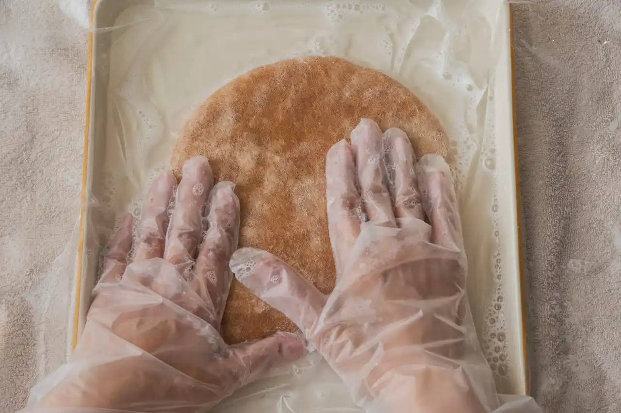 ふわふわの羊毛を、フェルトにして形を作ります。 |