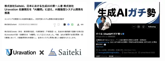 その実現に向けて、AI開発の第一線に立つ株式会社Uravationの佐藤傑氏を顧問として迎え、 AI駆動型の開発フローの標準化を本格的に進めています。 |