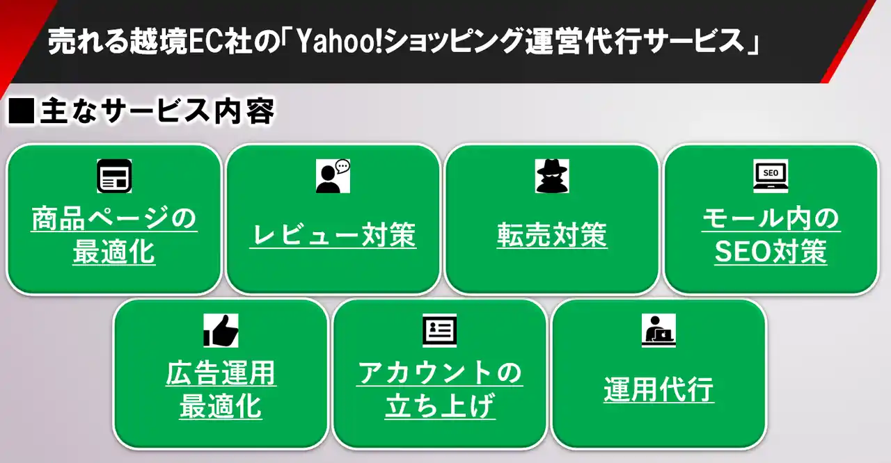 売れるネット広告社グループ株式会社(本社:福岡県福岡市、代表取締役社長 CEO:加藤公一レオ、東証グロース市場:証券コード9235、以下 売れるネット広告社グループ)の連結子会社である株式会社売れる越境EC社は、この度、Amazon・楽天市場・TikTok Shopに続き、新たに『Yahoo!ショッピング運営代行サービス』の提供を正式に開始いたしました。 |