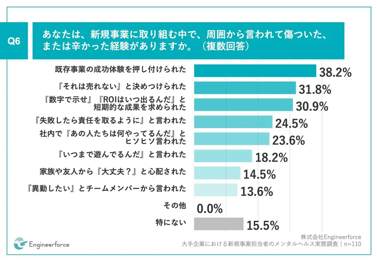 Q6.あなたは、新規事業に取り組む中で、周囲から言われて傷ついた、または辛かった経験がありますか。(複数回答) |