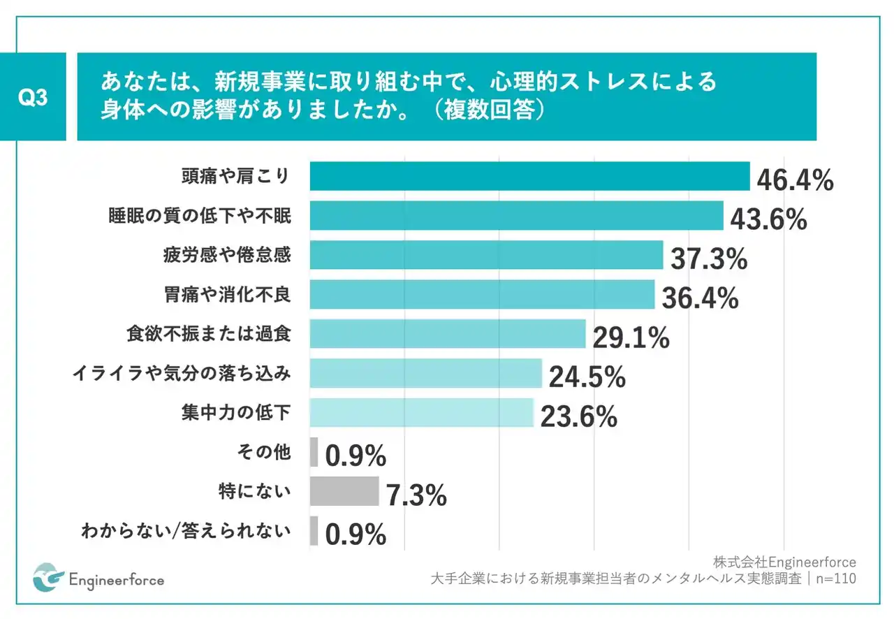 Q3.あなたは、新規事業に取り組む中で、心理的ストレスによる身体への影響がありましたか。(複数回答) |