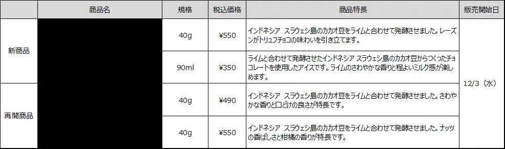 2025年1月に発売したライム発酵のチョコレート商品は、想定を上回る反響をいただき、多くのお客さまにライム発酵カカオの価値に共感していただけました。前回の好評を受け「ライム発酵のカカオを生かした レーズントリュフ」、「ライム発酵のカカオを生かしたアイス チョコレート」を新たにラインナップに加え、発売いたします。 |