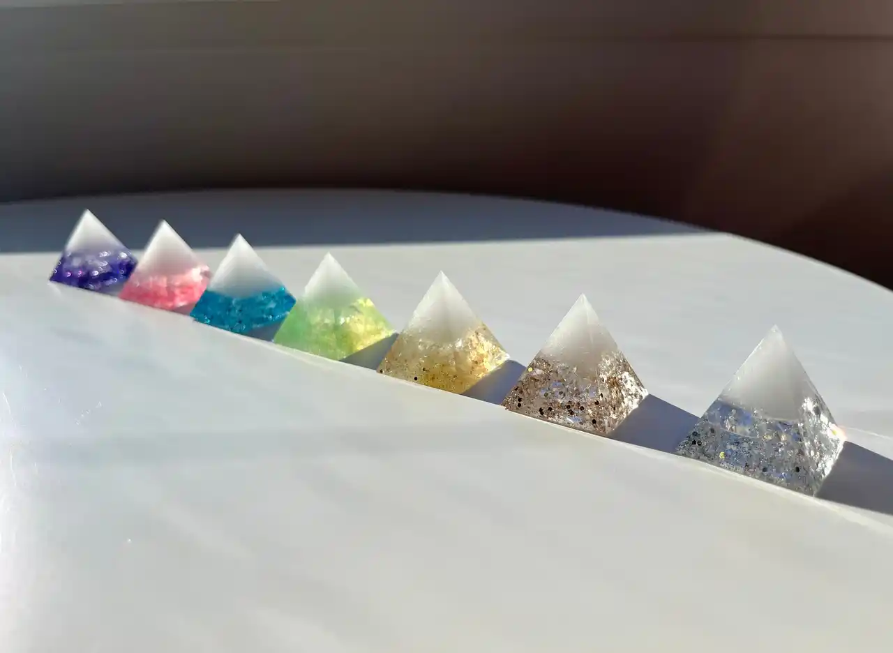 Mini Pyramid は 水晶・海塩・ラメだけで作られた、 純度の高い“光の守り”。 |