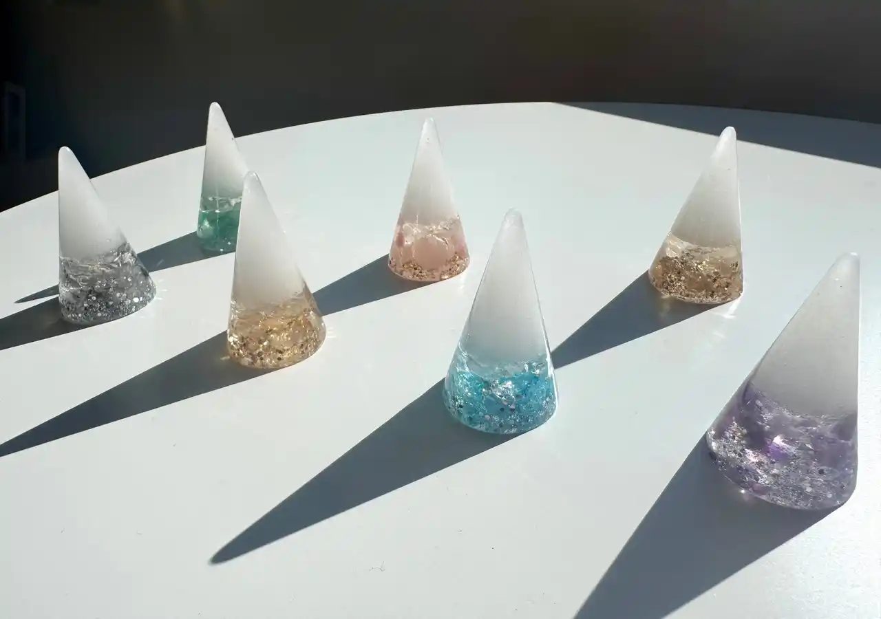 Crystal Cone はその象徴性を活かし、 光・祈り・浄化 を閉じ込めた新時代の盛り塩として完成しました。 |