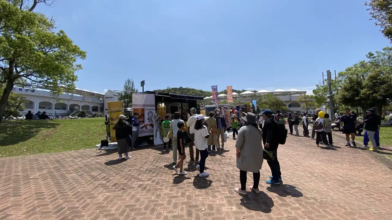 ラグビー・キューデンヴォルテクス かきどまり陸上競技場(長崎県)での出店の様子 |