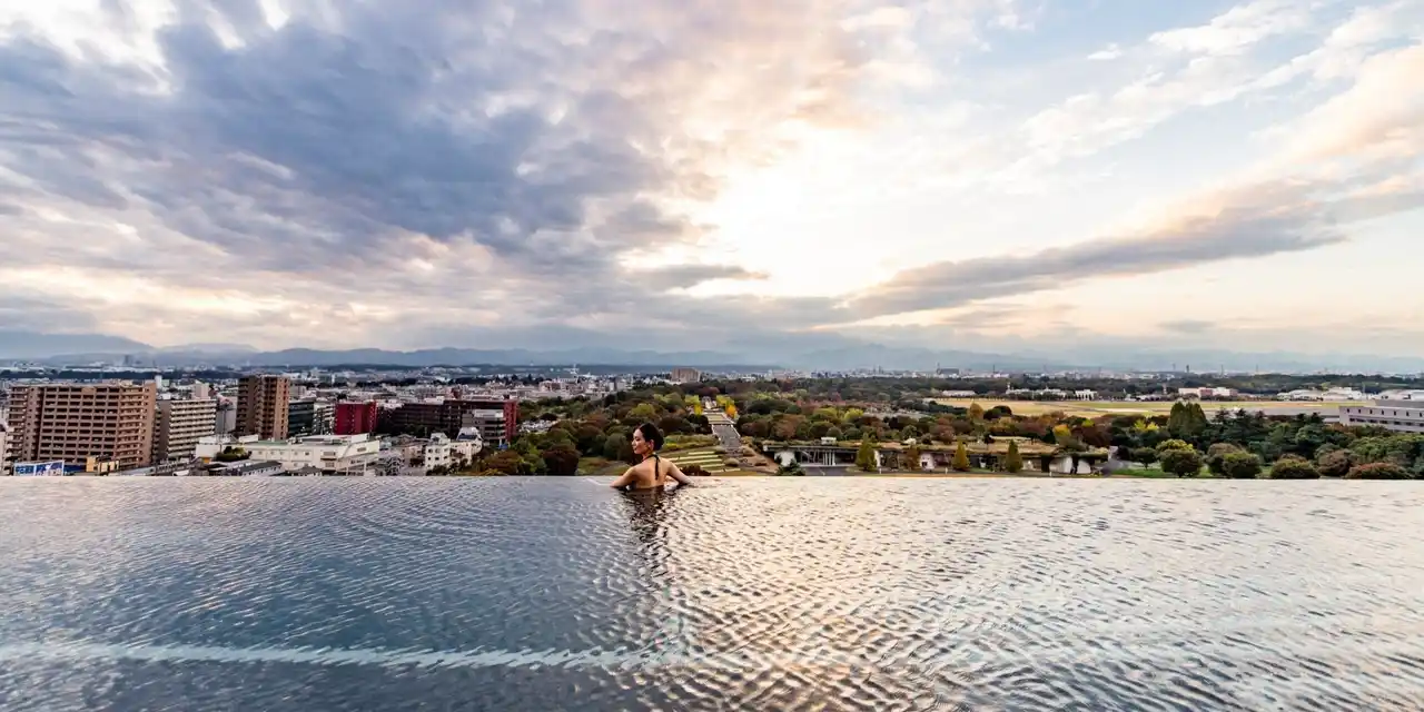 SORANO HOTEL最上階のインフィニティプールより望む、紅葉が色づく昭和記念公園の絶景 -###- |