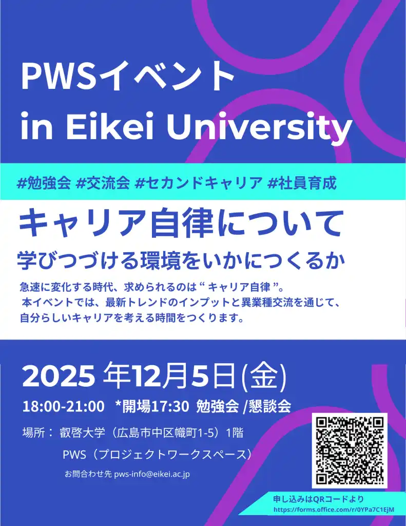 | 【参加者募集】12月5日(金) 【PWSイベント】キャリア自律について~学び続ける環境をいかに作るか~ - 【公式サイト】広島県公立大学法人 叡啓大学 | ||||||||||||||