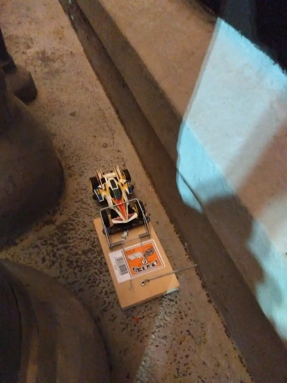 ねずみ取り器にミニ四駆がかかっていたり…… |