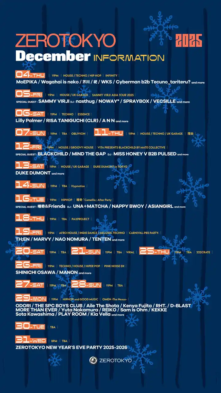 2025.12.31(水) ZEROTOKYO NEW YEAR’S EVE PARTY 2025-2026 |