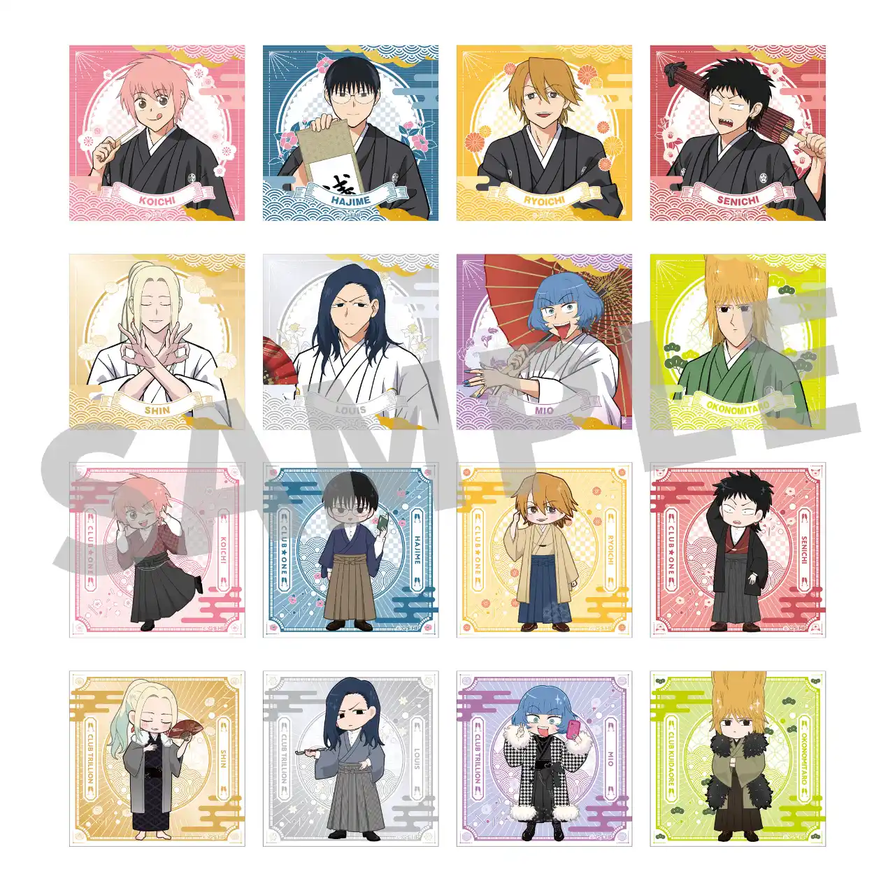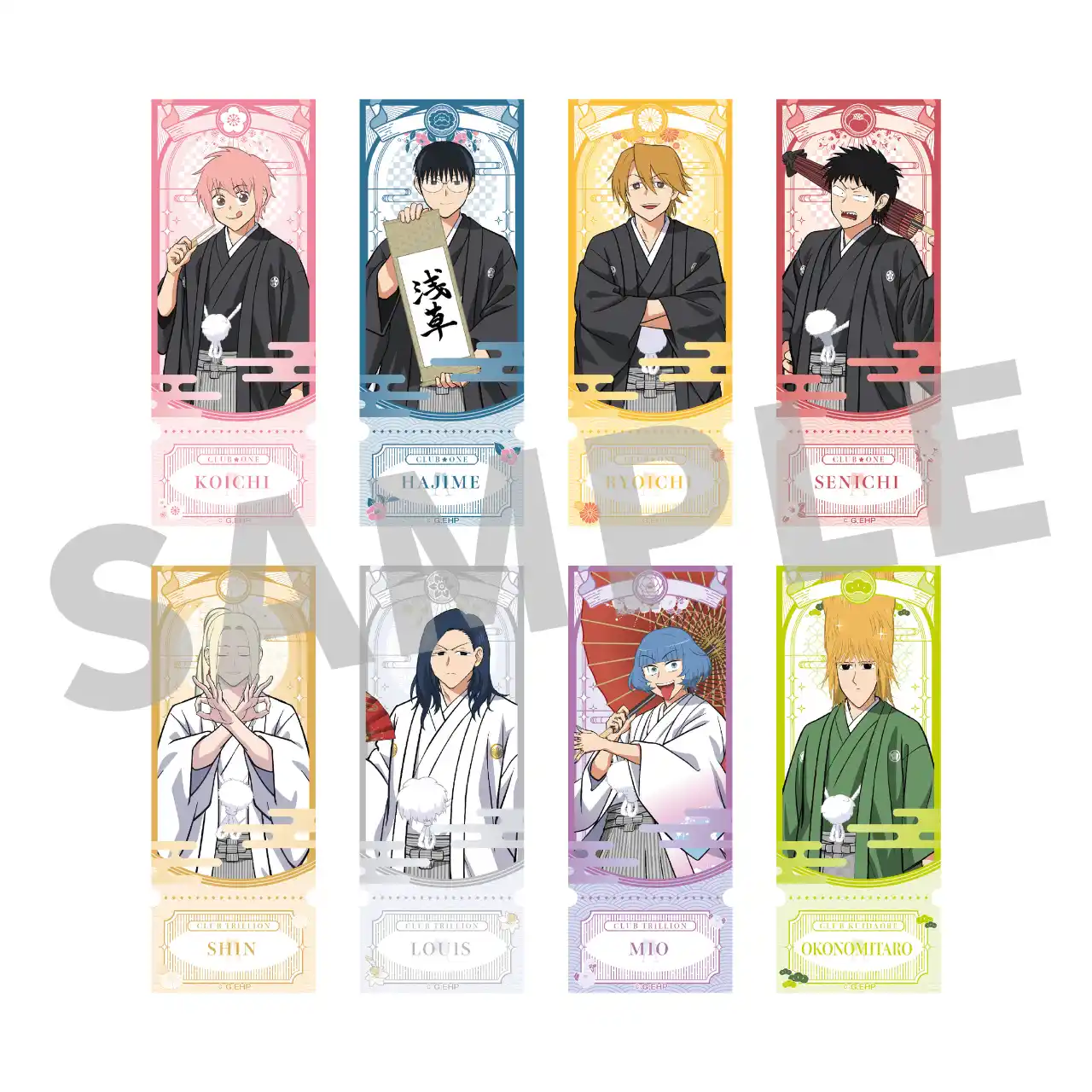 本イベントのために描き下ろされた特製イラストがオリジナルグッズになりました。浅草バージョンのオリジナル衣装で思い思いのポーズをとるキャラクターたち(等身8名、ミニキャラ8名)がアクリルスタンド、缶バッジをはじめ、多彩なラインナップに。 |