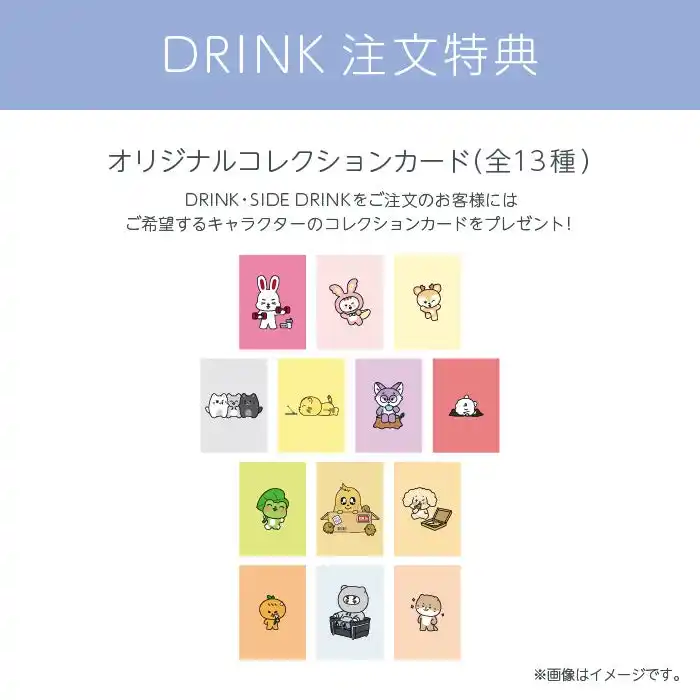 ■DRINK注文特典:ドリンクメニューをご注文いただいたお客様に1品につき1枚 |