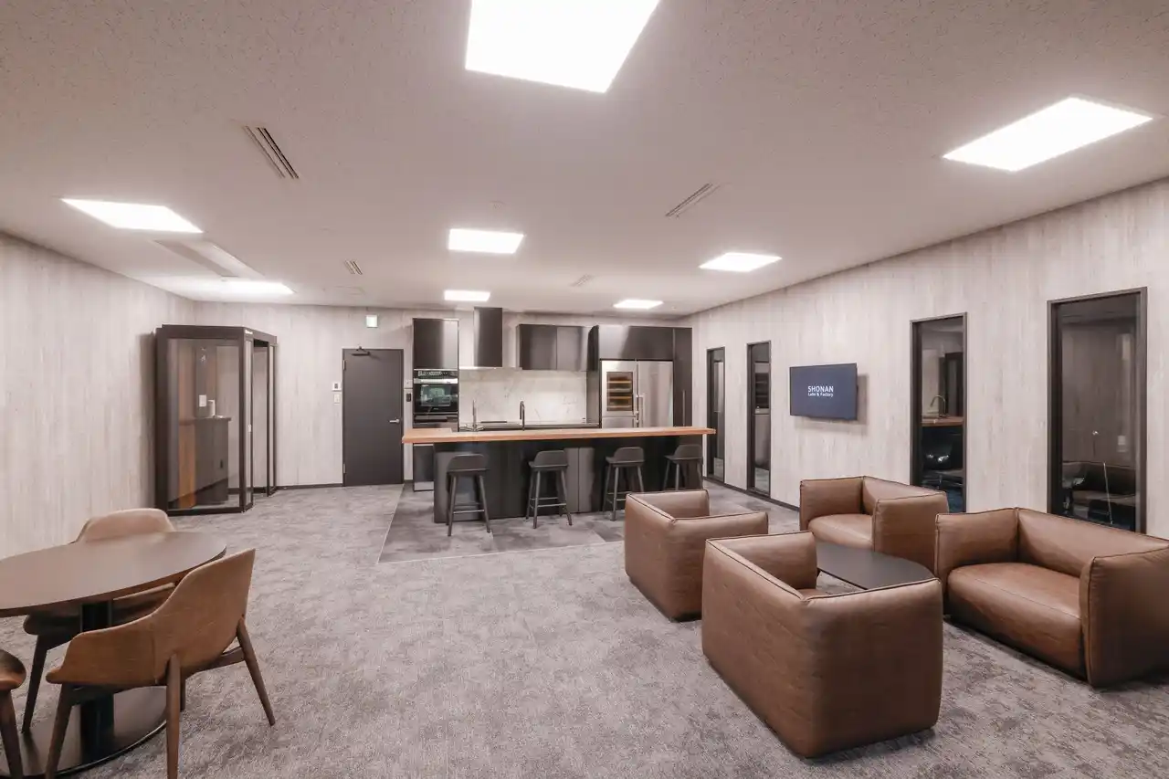 ラウンジにはラグジュアリーキッチンを配置。デザイン性・機能性を追求したオーダーメイドキッチンの魅力と、タニコーの高度な加工技術をご覧いただきながらお打ち合わせいただけます。 |