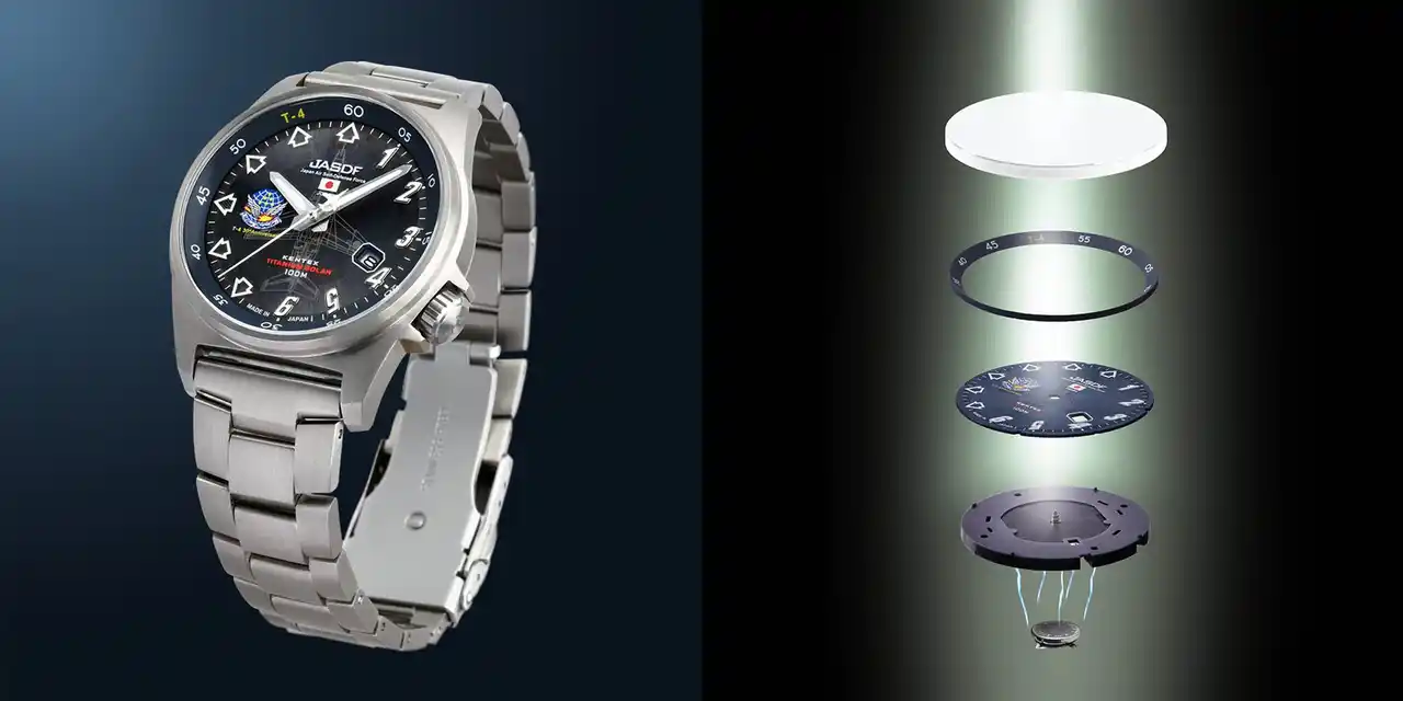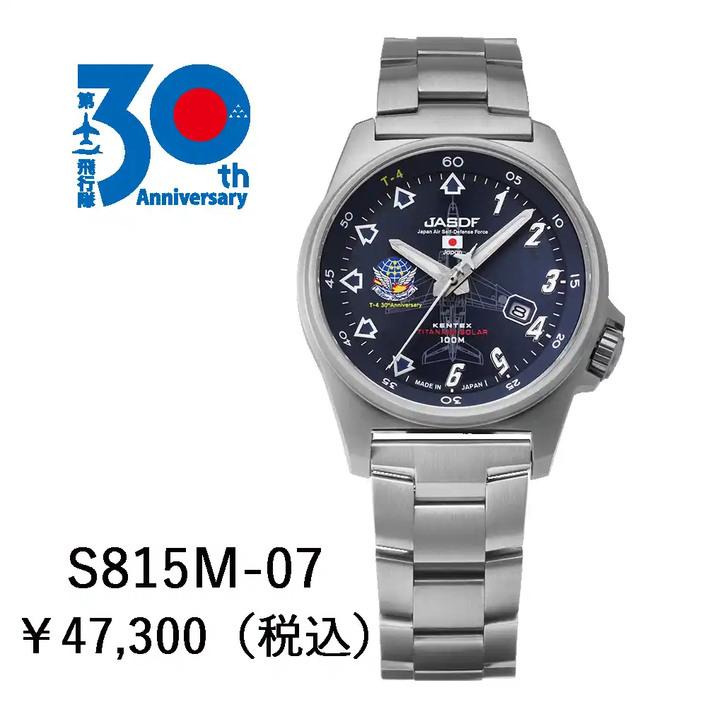 国産腕時計メーカーである株式会社ケンテックスジャパン(本社:東京都台東区、代表取締役:橋本 直樹、以下ケンテックス)は、2025年11月29日(土)、航空自衛隊アクロバット飛行隊「ブルーインパルス」が運用するT-4機の運用開始30周年を記念したアニバーサリーモデル 「Blue Impulse チタンソーラー T-4 30周年記念モデル」を限定300本にて発売いたします。 |