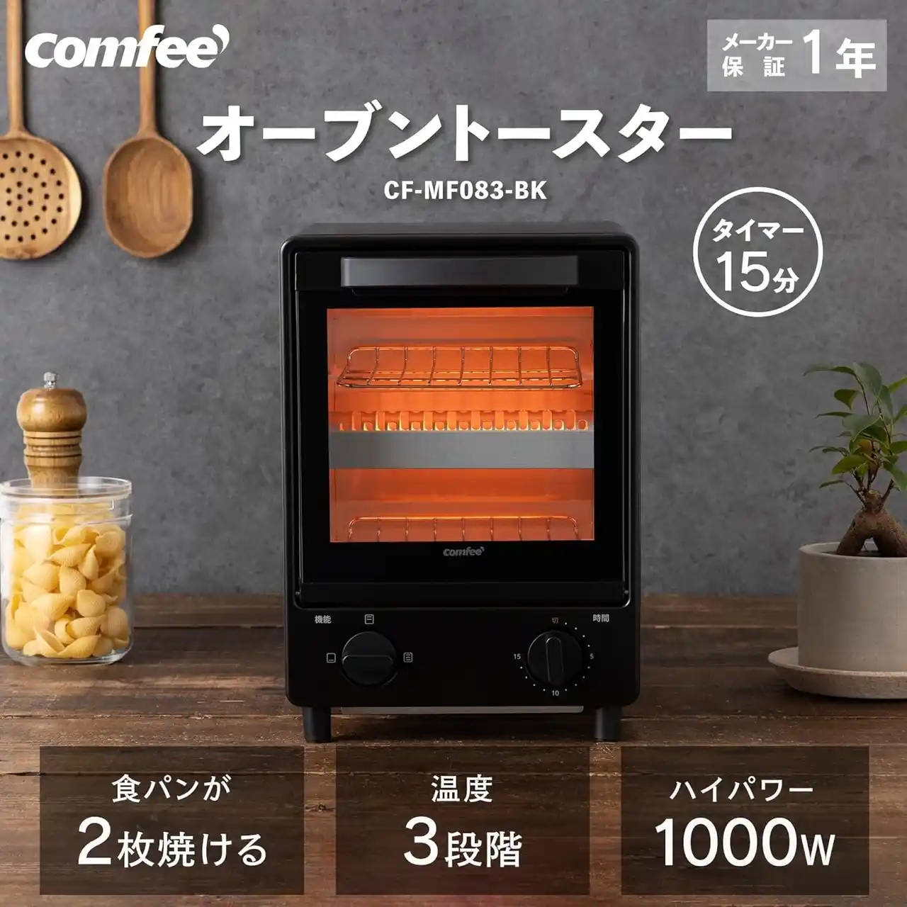 | コンフィー(COMFEE') オーブン・トースター 2枚焼き タイマー15分調節 1000W CF-MD081-BK | |||