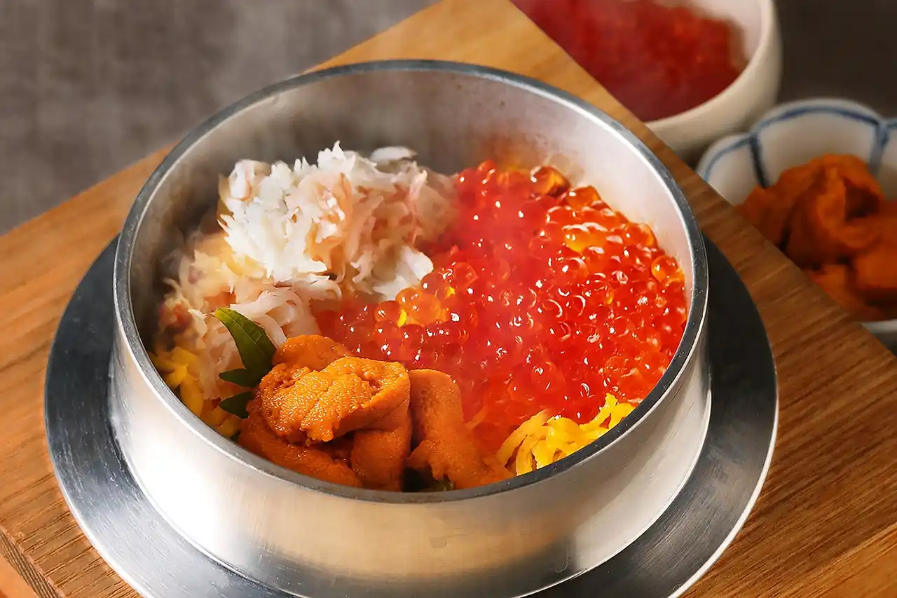 香住産ずわいがにと生うに、いくらの三宝釜飯 |