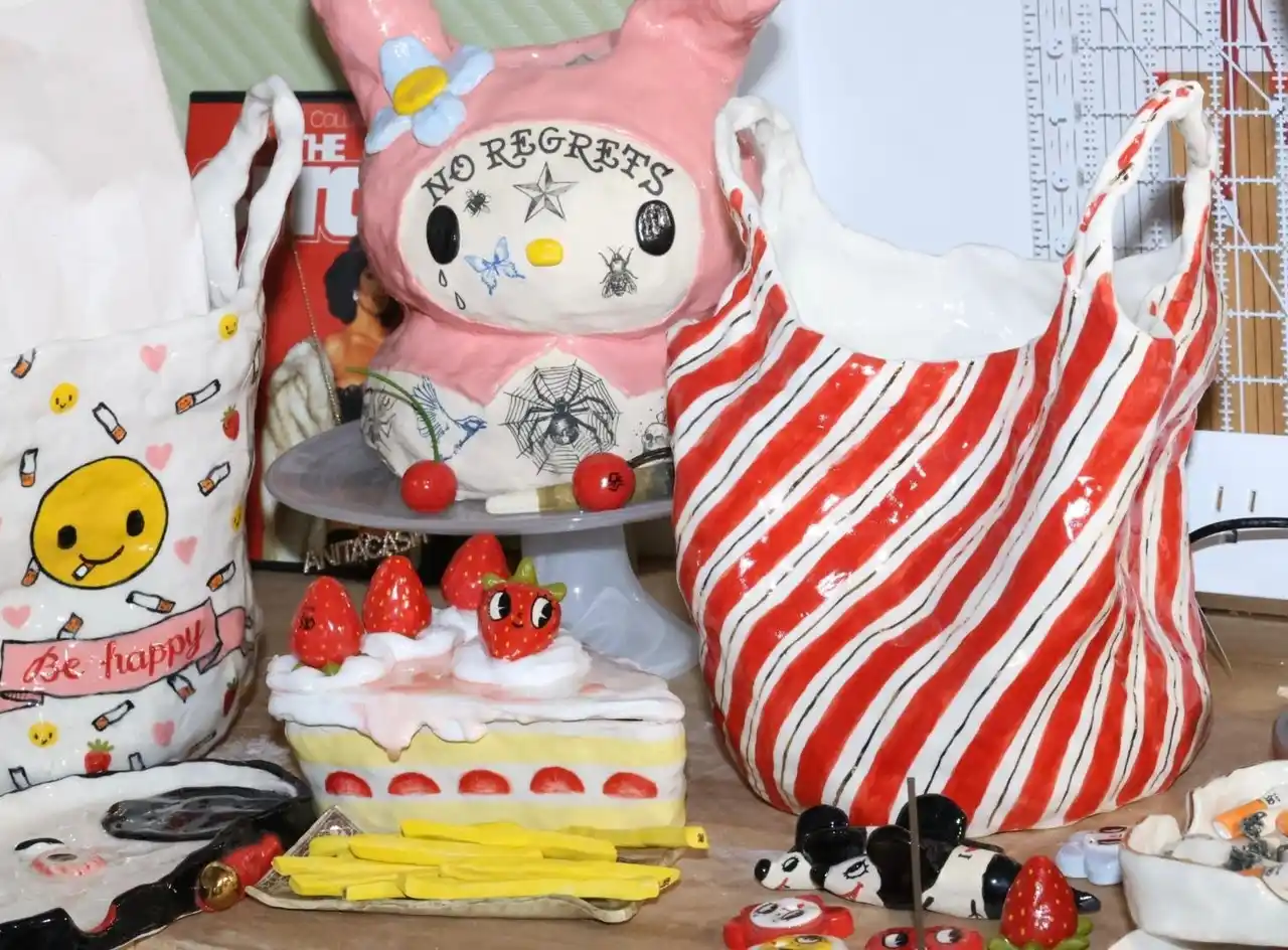 彼女のマルチメディア作品の原点には幼少期の体験があり、特に商業看板のペインターとして腕を磨いていた父の影響を強く受けました。以来、セラミック、ウッドバーニング(焼き描き)、絵画、ジュエリー、テキスタイル、版画、イラストレーションなど、多彩な素材や技法に挑戦しています。 |
