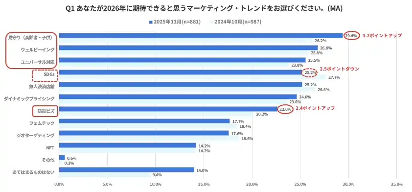 ■【2026年に期待できるマーケティング・トレンド】 見守り、ウェルビーイング、ユニバーサル対応が上位3トレンド