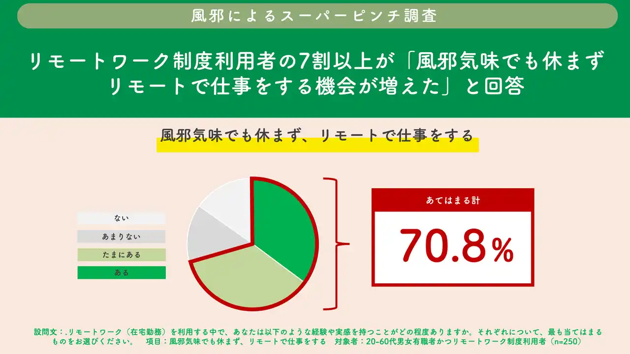 リモートワーク制度利用者の7割以上が風邪気味でも休まずリモートで仕事すると回答! |