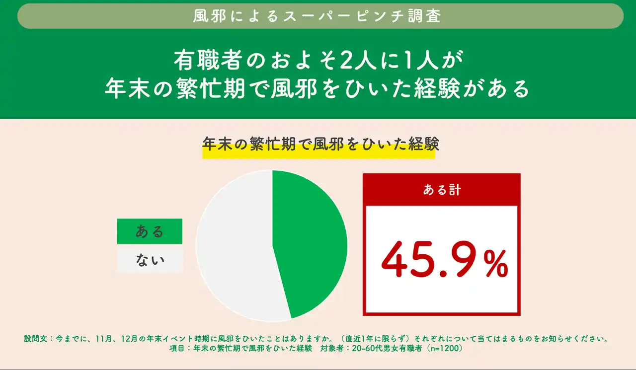 ■ビジネスパーソンのおよそ2人に1人(45.9%)が年末繁忙期に風邪を引いた経験あり!