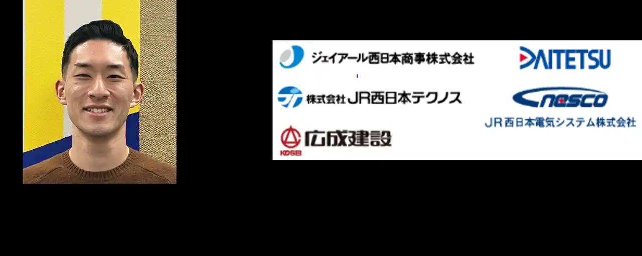 (株)JR西日本テクノス/(株)JR西日本新幹線テクノス/(株)JR西日本後藤テック/(株)JR西日本テクシア/大鉄工業(株)/広成建設(株)/JR西日本電気システム(株)/JR西日本電気テック(株)/(株)てつでん/ジェイアール西日本コンサルタンツ(株)/関西工機整備(株)/(株)富士電機製作所/アジア航測(株)/日本信号(株) |