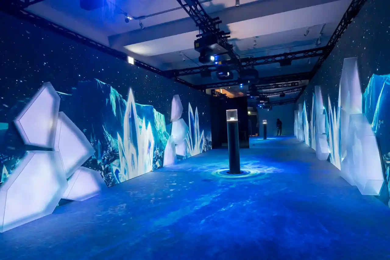 2Fでは、「アクアグリーン」を想起させる植物の世界と、「EVO新メンソール」を想起させる氷の世界を対比的に表現。見て、触れて、息を吹きかけるといった参加型の体験を通じて、空間そのものが呼応するような非日常をお楽しみいただけます。さらにフロア内にはフォトブースを常設し、ブース内で撮影すると、まるで自分自身が凍りついたかのような写真撮影体験も可能です。撮影した写真は無料でお持ち帰りいただけます。 |