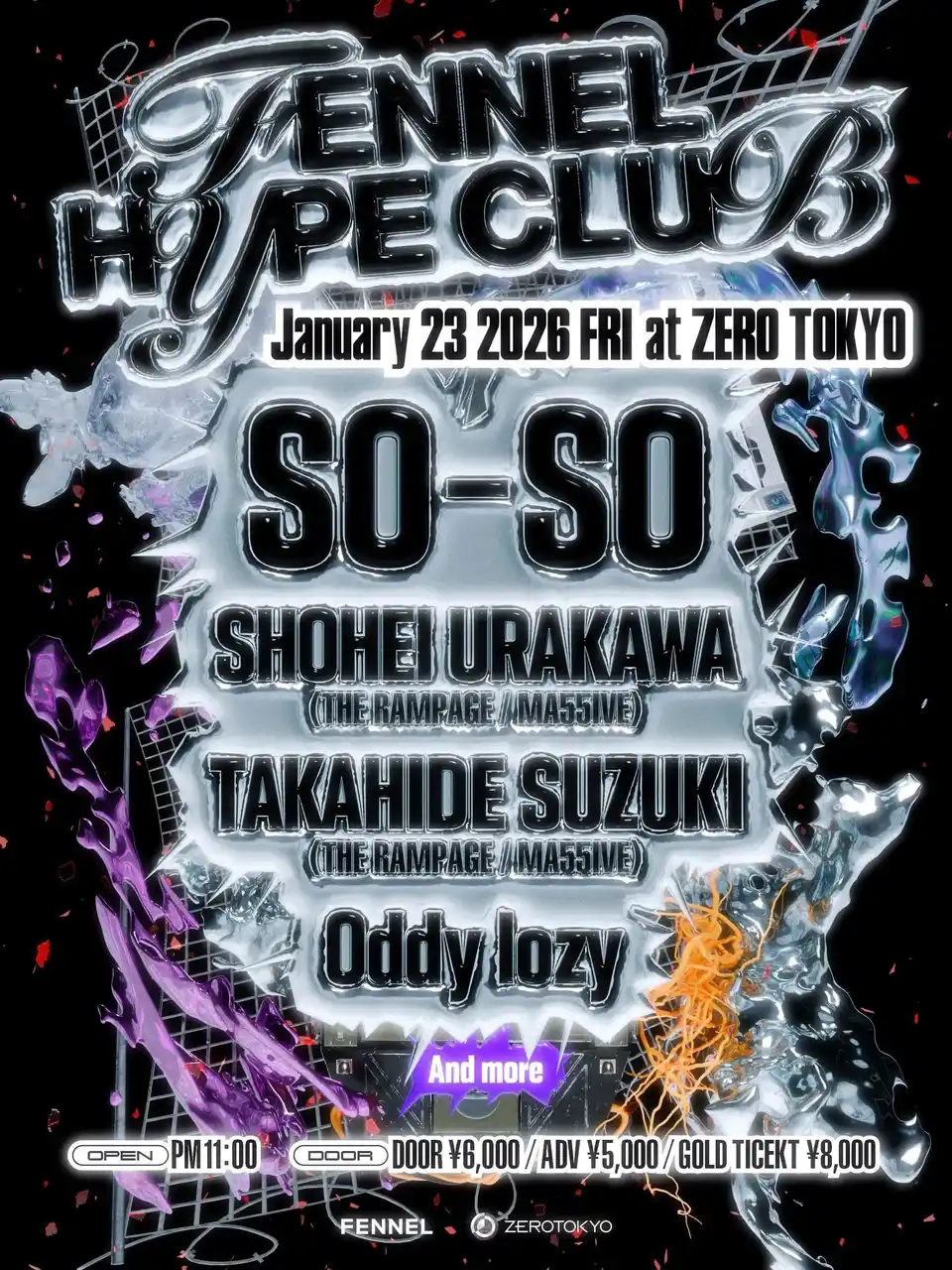FENNEL初となる音楽イベントを、新宿・歌舞伎町のナイトエンターテインメントの発信地「ZERO TOKYO」にて開催いたします。 本イベントには「SO-SO」に加え、「浦川翔平」「鈴木昂秀」の2名が出演。さらに、追加アーティストの登場も予定しています。 深夜のZERO TOKYOで、ゲームカルチャーと音楽シーンがクロスオーバーする、かつてない熱狂をお届けします。 |
