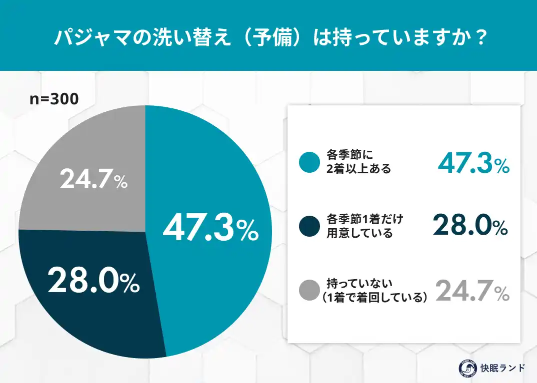 洗い替えは 47.3%が各季節で2着以上保有。一方、24.7%は1着のみで着回し |