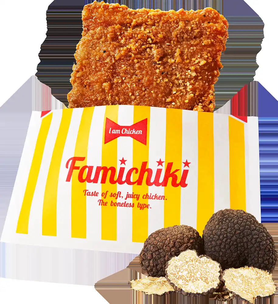 【内容】イタリア産黒トリュフパウダーを使用したファミチキです。黒トリュフの豊かな香りとチキンの旨みが絶妙にマッチした、ワンランク上の味わいです。 |