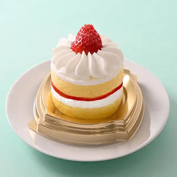 【内容】ふんわりとしたスポンジにコクのあるホイップクリーム、甘酸っぱいストロベリーソースといちごダイスを重ね、半分にカットした生のいちごを乗せたショートケーキです。 |