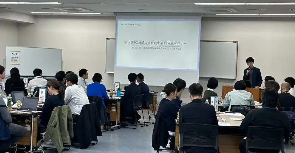 生成 AI ソリューション事業を展開するアンドドット株式会社(本社:東京都渋谷区、代表取締役:茨木 雄太、以下:アンドドット)は、この度、福岡県市町村職員研修所にて「自治体DX推進のための生成AI活用ワークショップ」を、15市11町村、計26団体、41名の福岡県内自治体職員を対象に実施いたしました。 |