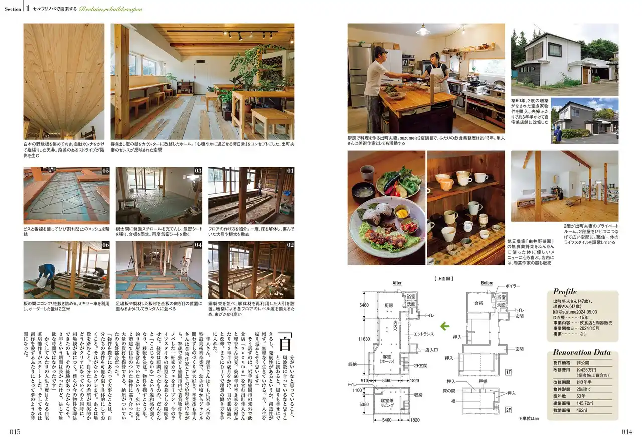 特集は「DIYで小商い」。リノベ民泊、小屋×開業、自作キッチンカー、3つのアプローチからユニークなナリワイを紹介。DIYノウハウから、開業にあたっての許可申請や資格取得まで掘り下げたリアルガイド。