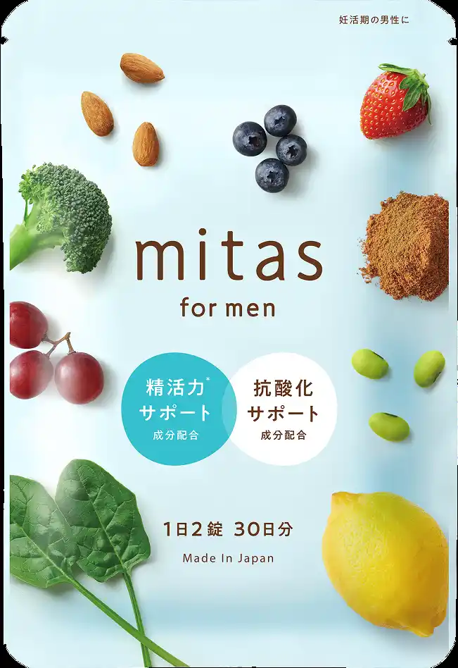 『mitas for men (ミタスフォーメン) 』は男性に不可欠な栄養素をオールインワンで配合されている男性用妊活サプリメントです。 |