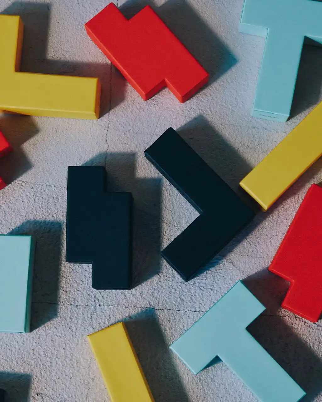 パッケージはパズルのブロックをモチーフにした全6種類のデザイン。 |