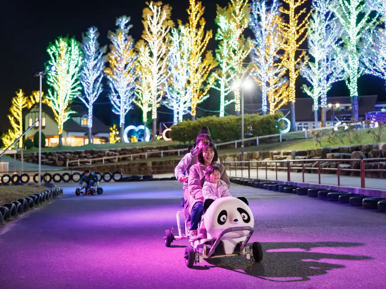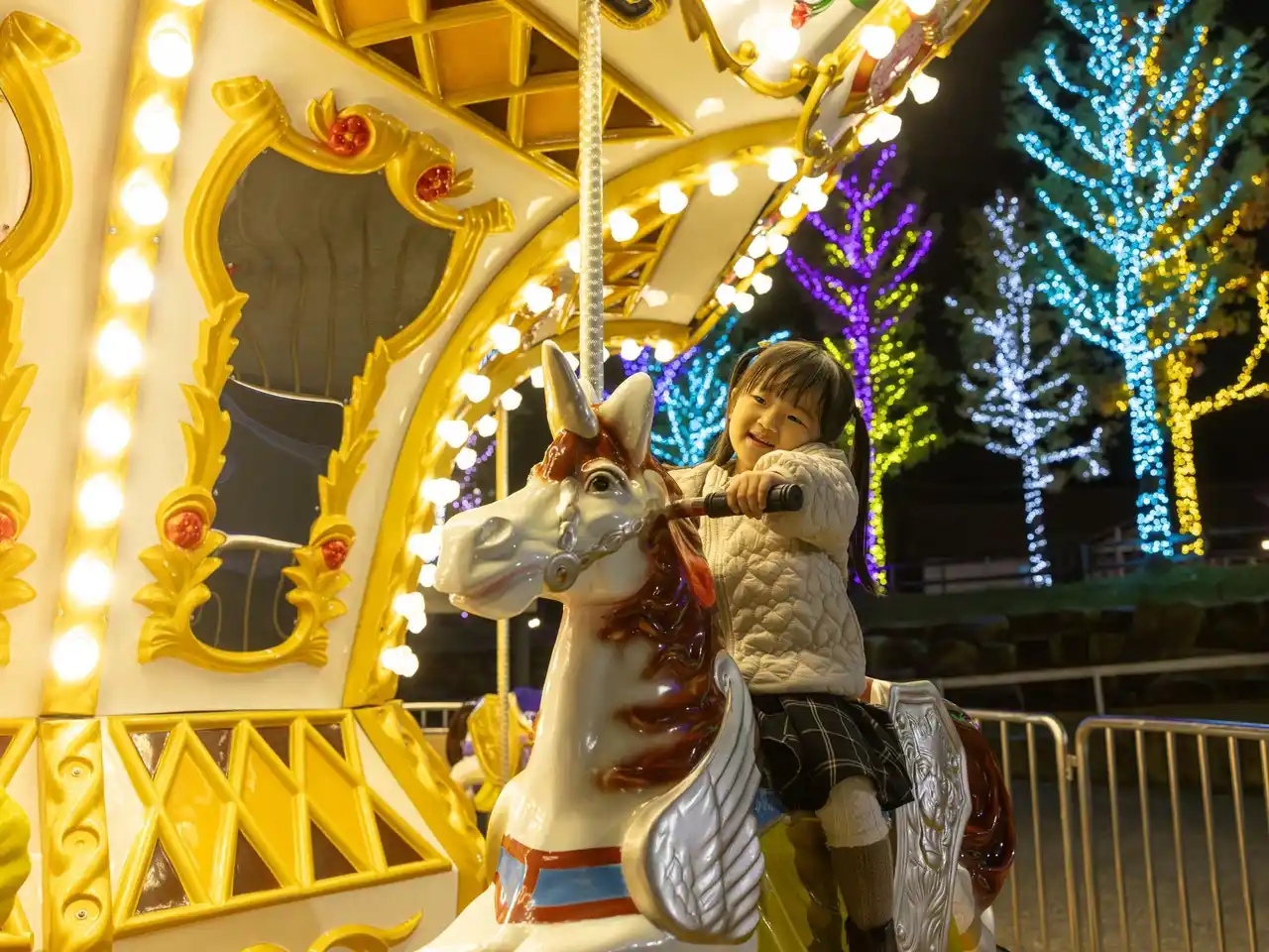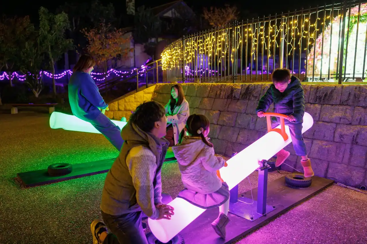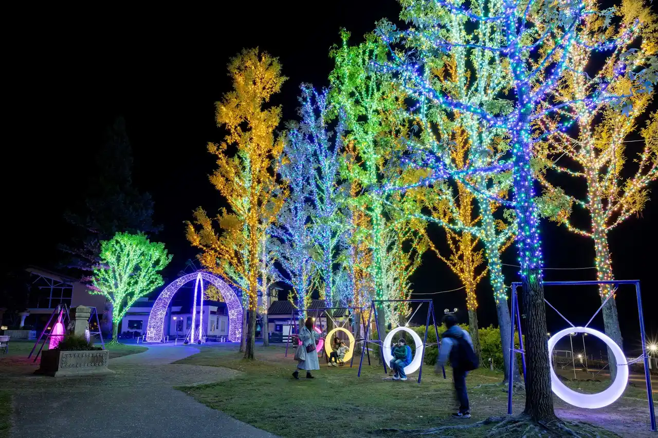 そのほかメリーゴーランドや観覧車なども夜間営業を行い、イルミネーションとともに、自然の中で光と遊びを満喫できるエリアとして展開されます。 |