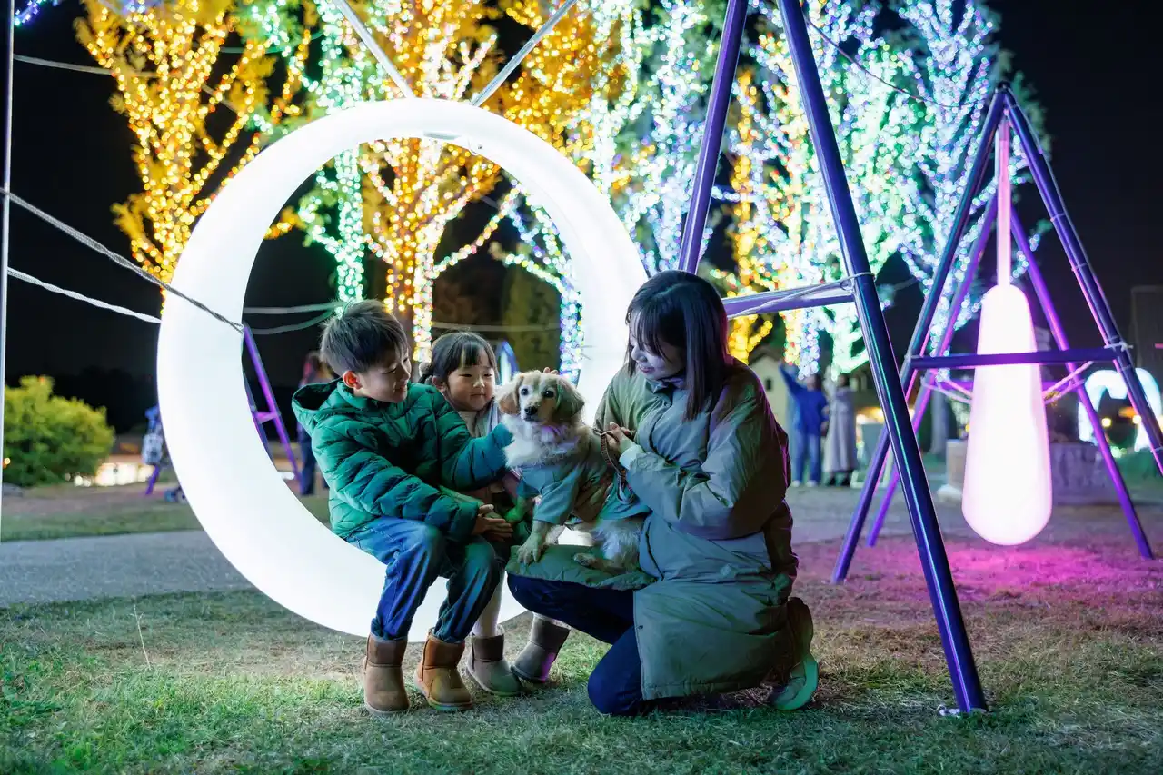 ドッグランもライトアップすることで、大人から子ども、ペットまで一緒に楽しめるイルミネーションイベントになっています。 |