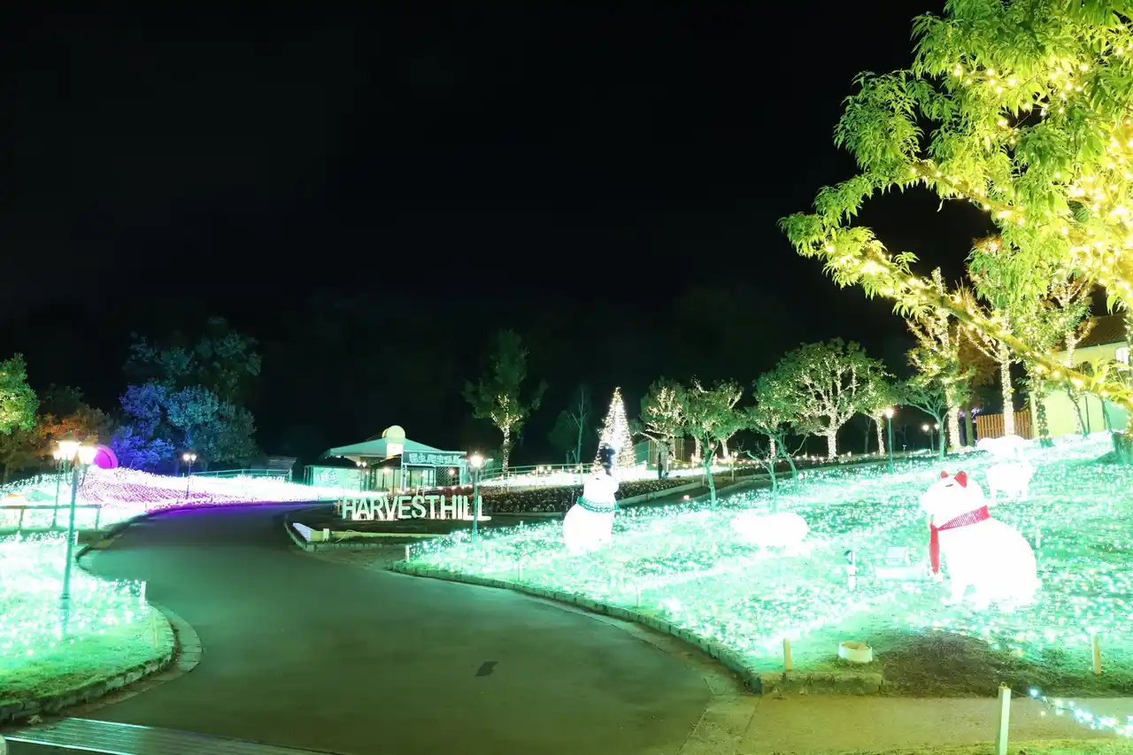 大阪府堺市南区にある体験型農業公園「堺・緑のミュージアム ハーベストの丘」で開催しているイルミネーションイベント「Wonder Night Hill 2025」が入園者15,000人を突破し、昨年を上回る賑わいを見せています。12月は平日も営業を行い、クリスマスシーズンに向けてさらなる盛り上がりが期待されます。 |