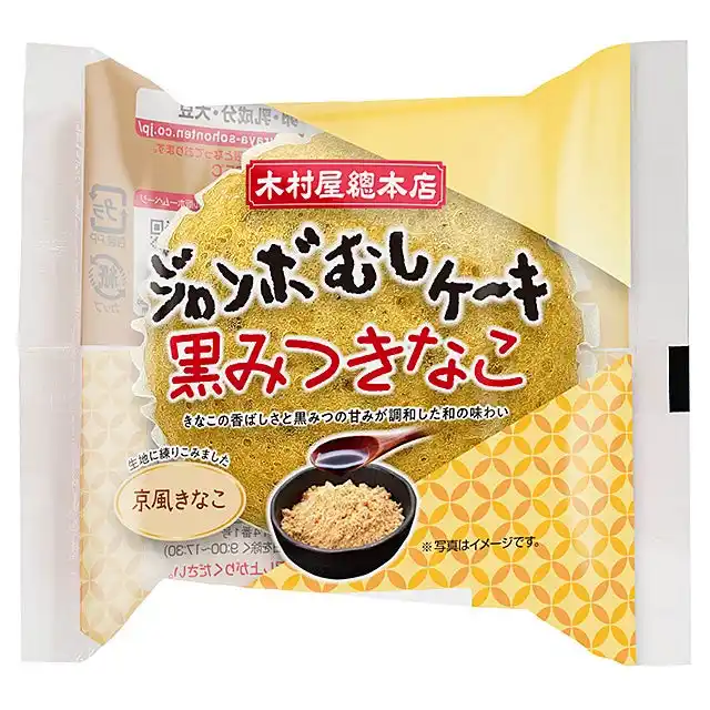 | きなこの香ばしさと黒みつの甘みが調和した和の味わいに仕上げた、しっとり口溶けのよいむしケーキです。(京風きなこ使用) | |||