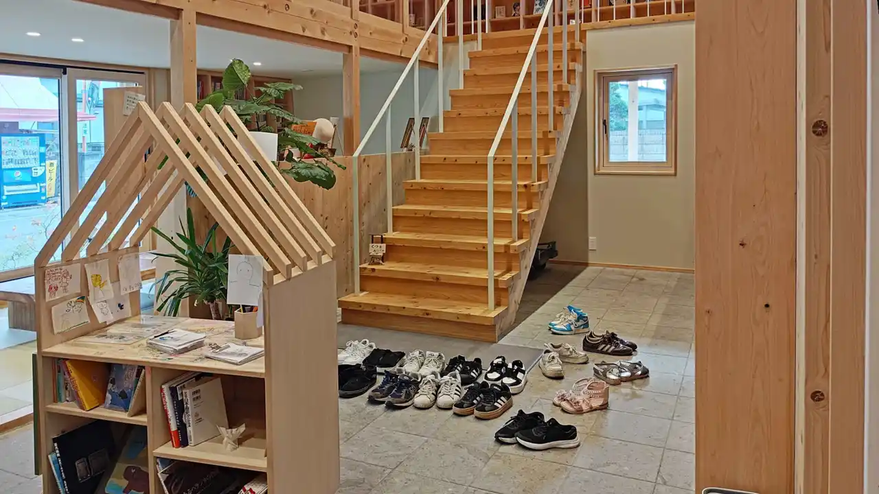 特に近隣小学校の児童から高校生まで、平日5~15人、休日には10~20人が日々利用する、地域の子どもたちの重要な居場所となっています。また、薬局外周の軒下に縁側風のベンチを設置し、閉局時でも休憩スペースとしてご利用可能です。 |