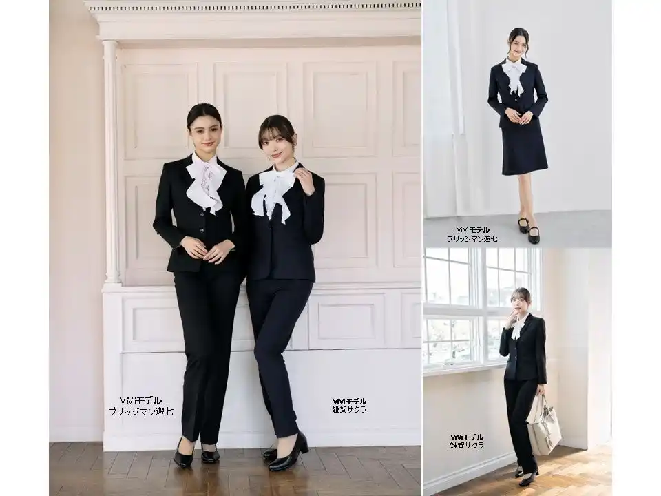 一枚で何役にも変身できるブラウス「合繊2WAYリボンレギュラーブラウス」や「リボン付き2WAYブラウス」、「リボン&フリル付き4WAYブラウス」の3種類が登場します。取り外し可能なリボンやフリルで自分の気分に合わせたコーディネートができます。「ViViウォッシャブル ショールカラーアンサンブル」はフォーマルなシーンに対応、制服を着なくなる学生や新社会人の方は、新生活を迎える際にブラックフォーマルも一着お持ちいただくと安心です。 |
