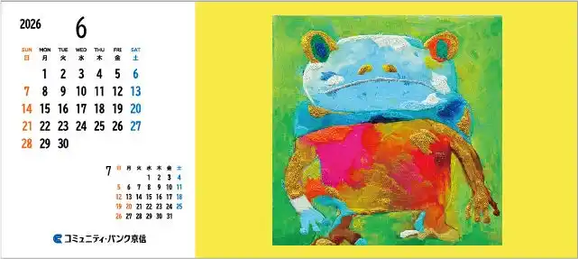 今回「2026年卓上カレンダー」では、当金庫が目指す「ソーシャル・グッドな社会」をアートの力で表現するため、株式会社ヘラルボニーとコラボレーションし、「障がいのある作家が描いたアート作品」を絵柄に使用しました。 |