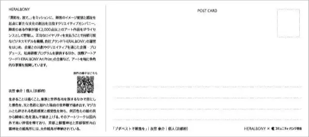 「異彩を、 放て。」をミッションに、障害のイメージ変容と福祉を起点に新たな文化の創出を目指すクリエイティブカンパニー。障害のある作家が描く2,000点以上のアート作品をIPライセンスとして管理し、正当なロイヤリティを支払うことで持続可能なビジネスモデルを構築。自社ブランド「HERALBONY」の運営をはじめ、企業との共創やクリエイティブを通じた企画・プロデュース、社員研修プログラムを提供するほか、国際アートアワード「HERALBONY Art Prize」の主催など、アートを軸に多角的な事業を展開しています。2024年7月より海外初の子会社としてフランス・パリに「HERALBONY EUROPE」を設立。 |