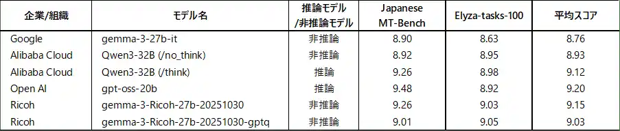 株式会社リコー(社長執行役員:大山 晃)は、自社で開発・提供する日本語大規模言語モデル*1(以下、LLM)シリーズの次世代モデルとして、Googleが提供するオープンモデル「Gemma 3 27B*2」をベースに、オンプレミス環境への導入に最適な高性能LLMを開発しました。 |