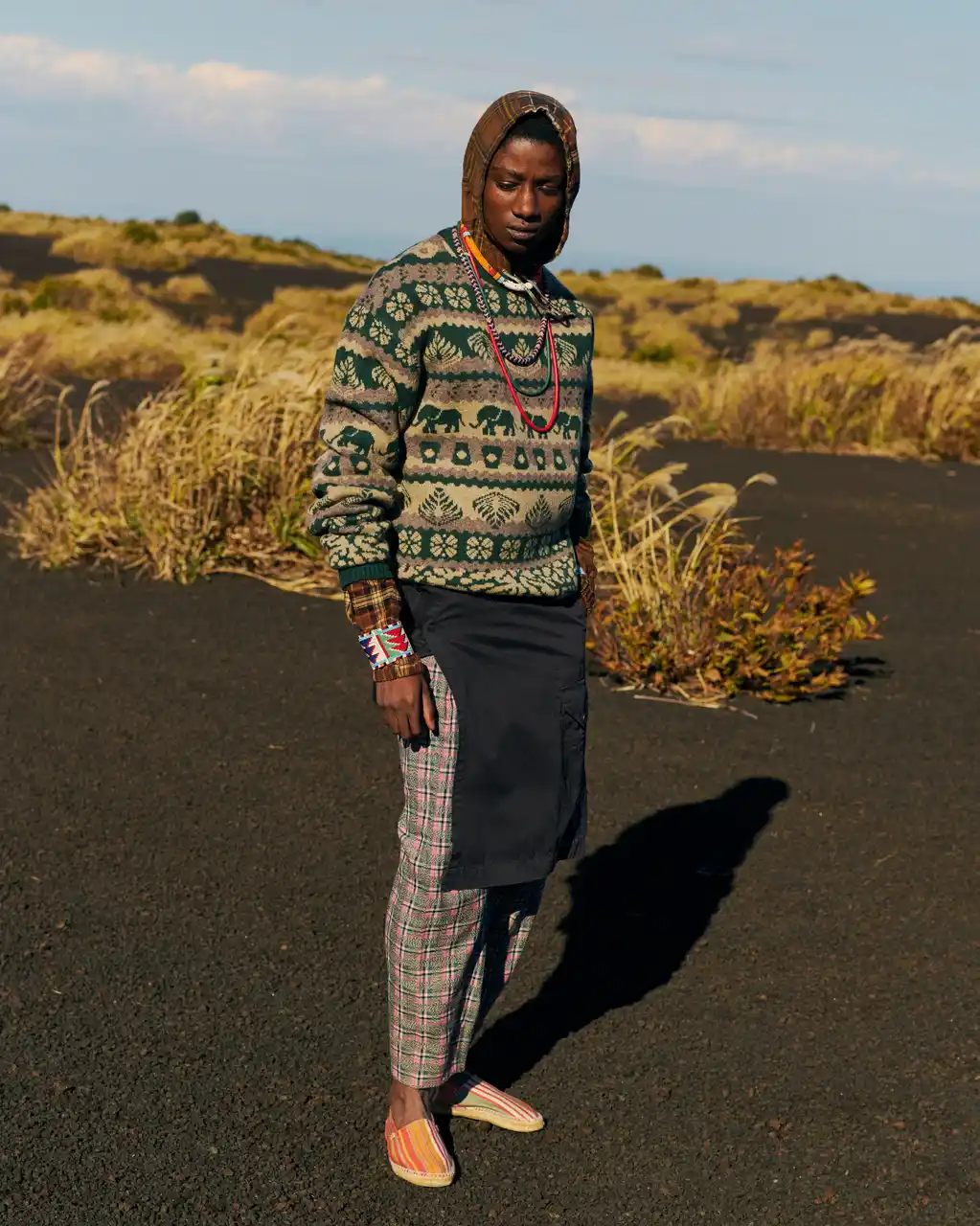クルーネックニット(¥35,200)、フリースジップブルゾン(¥30,800)、バラクラバ(¥12,100)、フリースマフラー(¥13,200)のほか、動物モチーフのプリントTシャツ(¥9,900)、ケニアを象徴する民族から着想したフーデッドネルブルゾン(¥28,600)など、多彩な“KENYA”の魅力を感じるアイテムが揃います。さらに「ビームス ライフ 横浜」では、コレクションのオリジナルパターンを採用したクッションも展開。インテリアにも“KENYA”の空気感を取り入れられる特別アイテムとしてお楽しみいただけます。 |