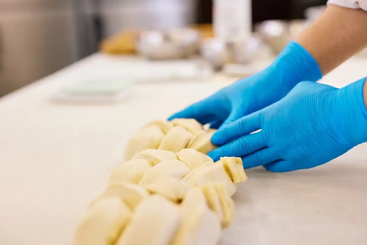 リリッカのデニッシュは、オリジナルブレンドの小麦粉と厳選された材料を丹念に練り上げ、バターの層を何層にも重ねてこだわりの製法で焼き上げています。 |