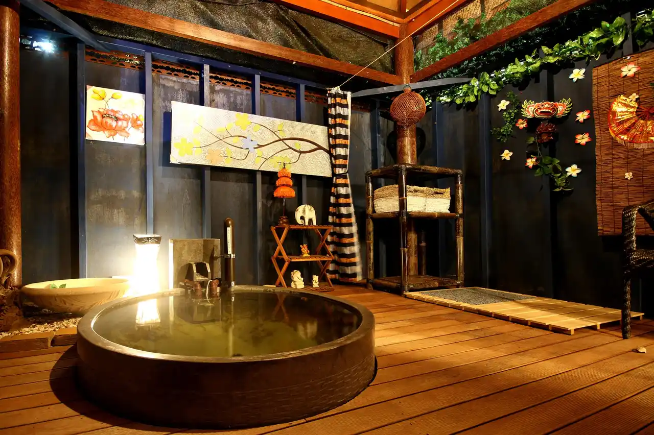 バリ&リゾート「Sayaの風」は、三重県鳥羽市安楽島に位置し、鳥羽湾に浮かぶ島々を見渡せる高台に建設されたバリ風のリゾートホテルです。館内や客室にはバリの雰囲気が漂い、カラオケルームやリラクゼーション&漫画コーナーなど、多様な娯楽施設やイベント・サービスを提供しています。食事に加え、チェックイン後にはビール・カクテル・ワイン・日本酒・ソフトドリンクの飲み放題があり、温泉や岩盤浴など、すべてが宿泊料金に含まれる『オール・インクルーシブスタイル』で運営しています。 |